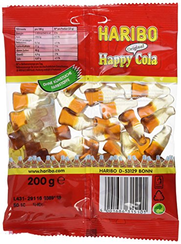 Innerhalb dieses Angebots erhalten Sie das Haribo Happy Cola Fruchtgummi jeweils 6 mal in der 200g Packung.