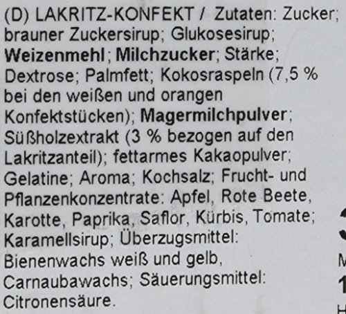 Das Lakritzkonfekt wartet mit den Geschmacksrichtungen Kokos, Kakao, Zitrone, Saftorange, Karamell und Himbeere auf und wird Ihren Gaumen mit seiner einzigartigen und unwiderstehlichen Variation verwöhnen.